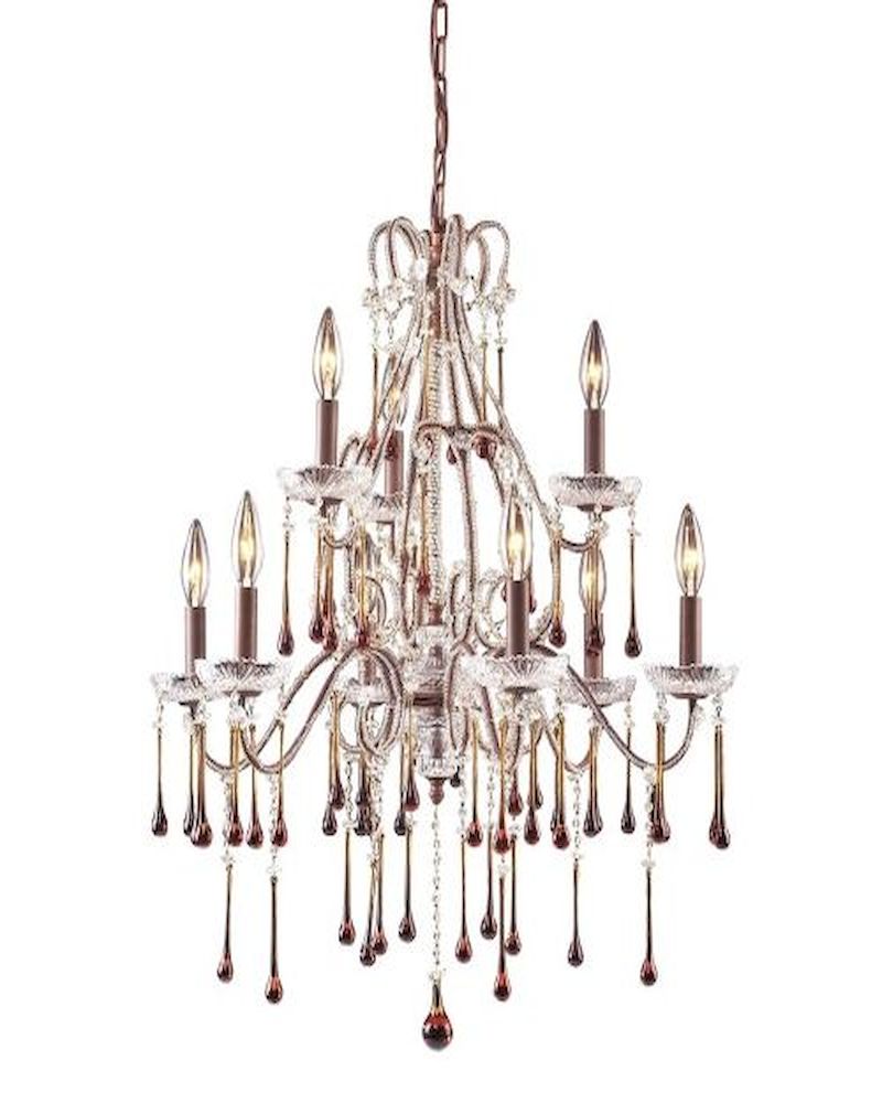 ELK 9 Light Chandelier in Rust and Amber Crystal EK-4013-6-3AMB