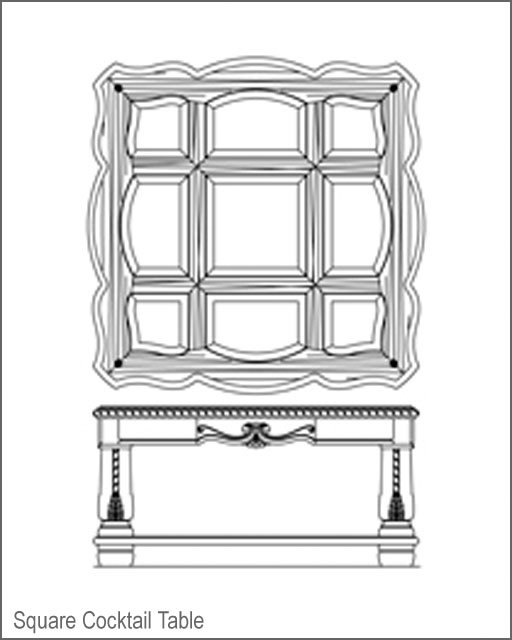 - Square Cocktail Table – 42"W x 42"D x 20"H