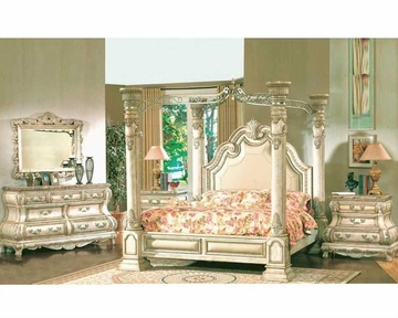 This MCF bedroom set includes a king sized bed, a night stand, a bench, a chest, a mirror, TV armoire and a dresser. The large sized bed has four beautifully crafted pillars at the four corners and they are joined vertically on the top. These pillars not only look good but also are very useful when it comes to cover the bed with any canopy or net. Together the traditionally designed dresser, chest and the night stand looks very classy. Overall the set gives a very royal touch to your bedroom.