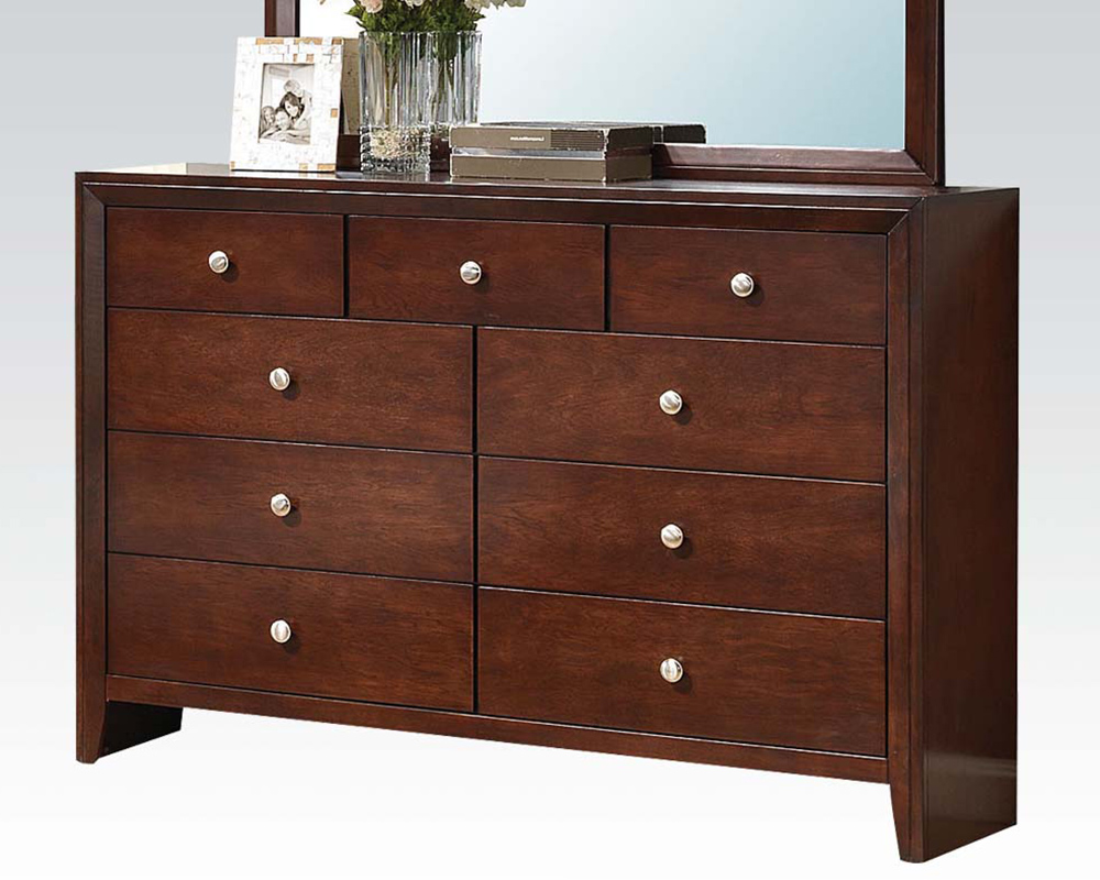 This Ilana bedroom collection is an impeccable choice for your bedroom. All in this warm rich brown cherry finish, the style of the collection is somewhere between classic and modern. It features upholstered headboard for you to lay back and relax, handy storage footboard is designed for you to save space.Includes: