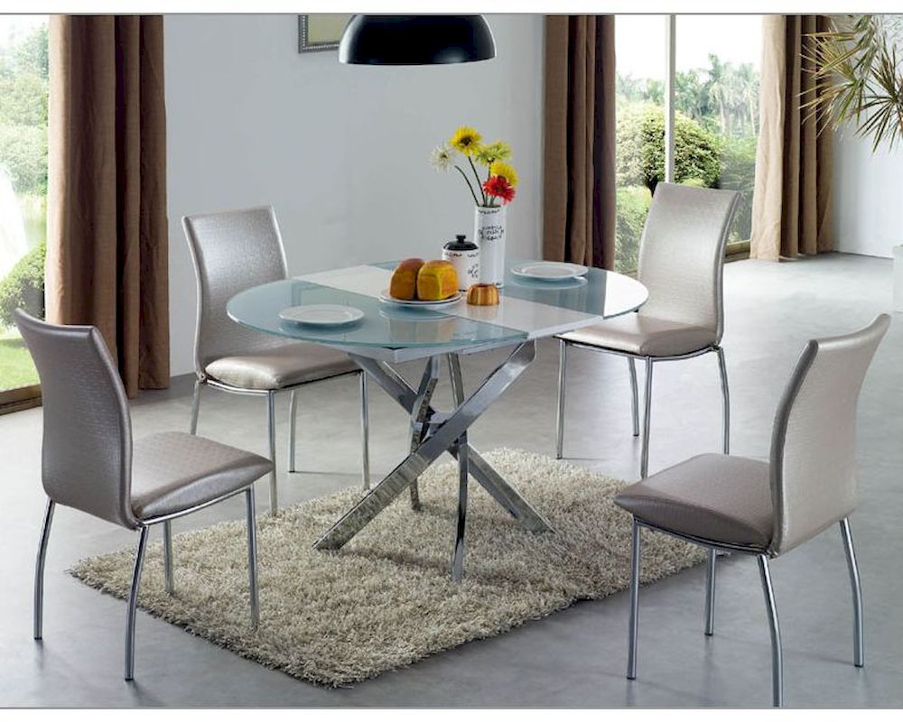 Open with one 12" leaf - 51"W x 39"D x 30"H - Upholstered Side Chair – 18"W x 21"D x 35"H