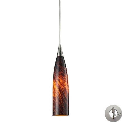 ELK 1 Light Pendant in Satin Nickel and Espresso Glass With Adapter Kit EK-501-1ES-LA