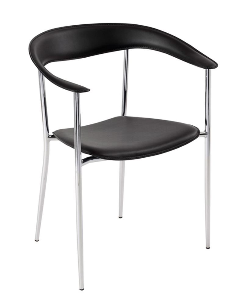 The leather seat and back comes in basic black or white. And it's a great design. The seat is commodious and there's just enough back to do the job comfortably. It's one of those chairs that make its own statement without interrupting the room.