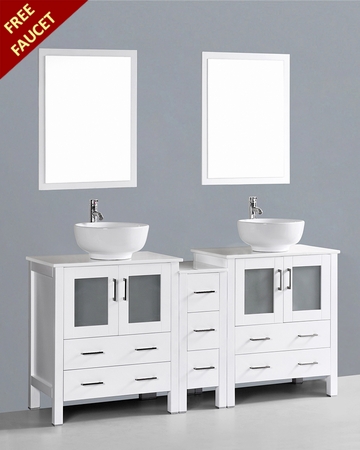 - 1 x Glossy White 72in Double Round Vessel Sink Vanity AW230RO1S