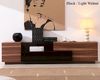 This Entertainment TV Center offers a contemporary look with a clean uncluttered design and functionally multipurpose structure. Crafted from durable wood, wood products and veneers, it is available in High Gloss Black on Light Walnut, High Gloss Grey, and High Gloss White on Walnut.