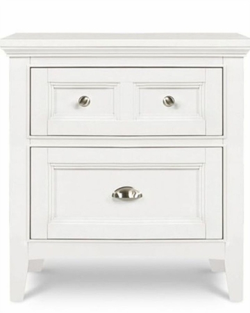 This nightstand from the Kenley collection is a must have. It has many important features including touch lighting and charging station. It also has drawers with nickel pull where you can store all your basic night essentials. You can also keep a lampshade on top to add decorative value. The charging stations and the wires that are part of the charging station are neatly hidden and are not visible to you. The touch lighting function conceals the electronic outlet from the user.