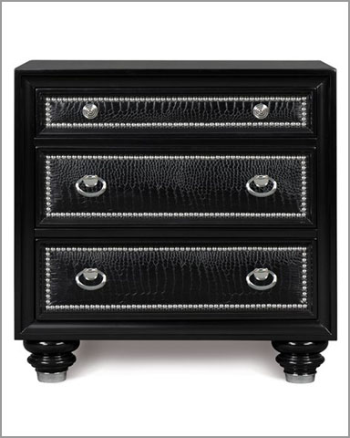 Infuse your world with high-end style through our Onyx collection. Inspired by the pages of international fashion magazines, this couture-worthy collection turns even the dullest architectural space into a showpiece of designer décor. With crocodile PVC, chrome plated nail heads, crystal hardware and sumptuous, high gloss black finish.