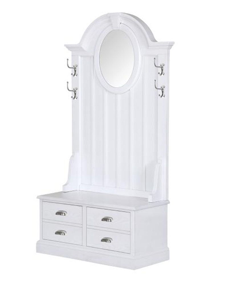 - Hall Table features 2 drawers, 4 hooks and 5 mm beveled mirror.