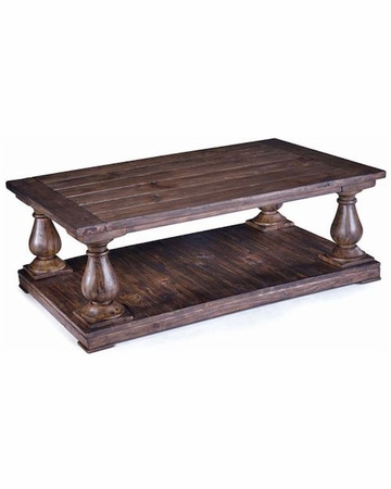 This rectangular cocktail table will be the highlight of your traditional living room settings. It will enhance your living area and bring out a feel of luxury and richness. The uptown design and carved wooden columns are a gorgeous addition to its design for an appealing appearance. This stylish and sturdy wooden cocktail table is crafted from pine wood and a slat-finish for smooth and silky finish. The Densbury collection from Magnussen brings a distinctive and versatile design for your lovely abode.