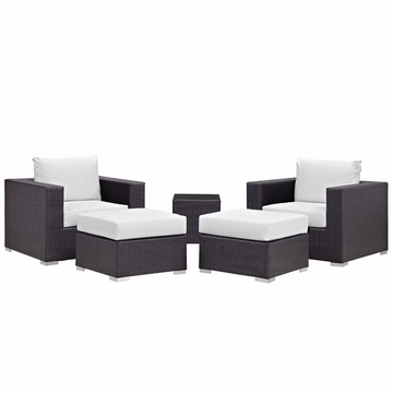 Modway Convene 5 Piece Outdoor Patio Wicker Rattan Sectional Set in Espresso White MY-EEI-2201-EXP-WHI-SET