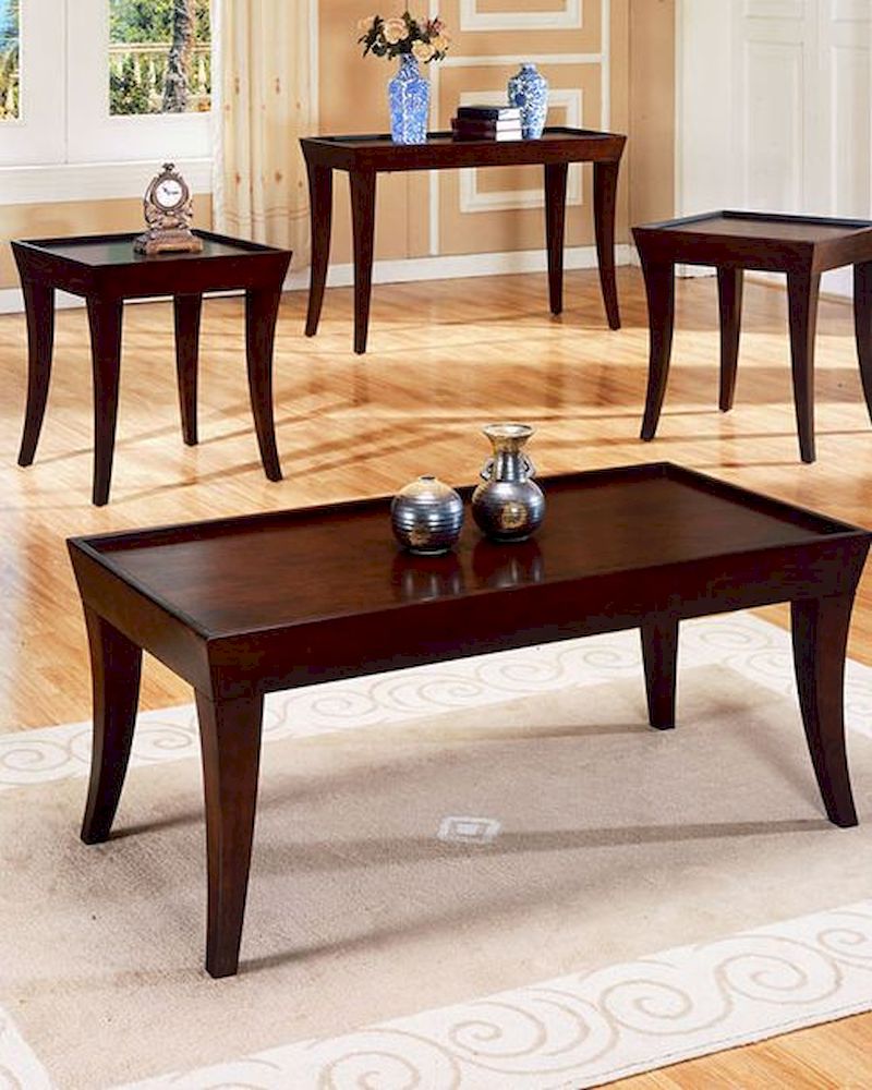 This great contemporary 3-piece occasional group features a tray top design in espresso finish.Includes: