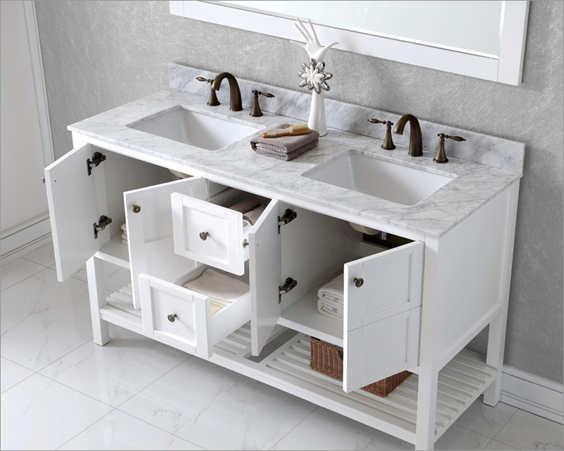Virtu USA Double Sink Bathroom Vanity Winterfell VU-ED-30060-WMSQ-WH