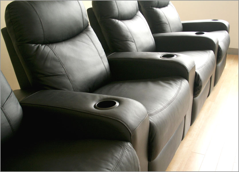 Wholesale Interiors, Inc. employs, trains, and retains only the finest crafts people in the upholstered furniture trade. Their state of the art factory utilizes the best of old world craftsmanship and design efficiency. As soon as your order is placed it is scheduled for production.Warehouse Interiors Row of 4 Cannes Home Theater Black Seats BS-8326-4